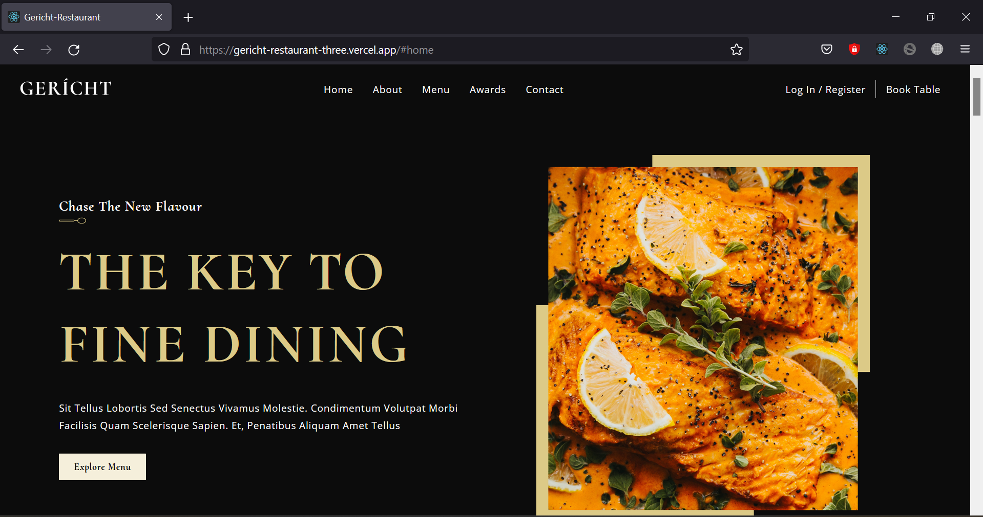 This is a landing page of Gericht Restaurant. I build this using ReactJS. Also I made it mobile responsive